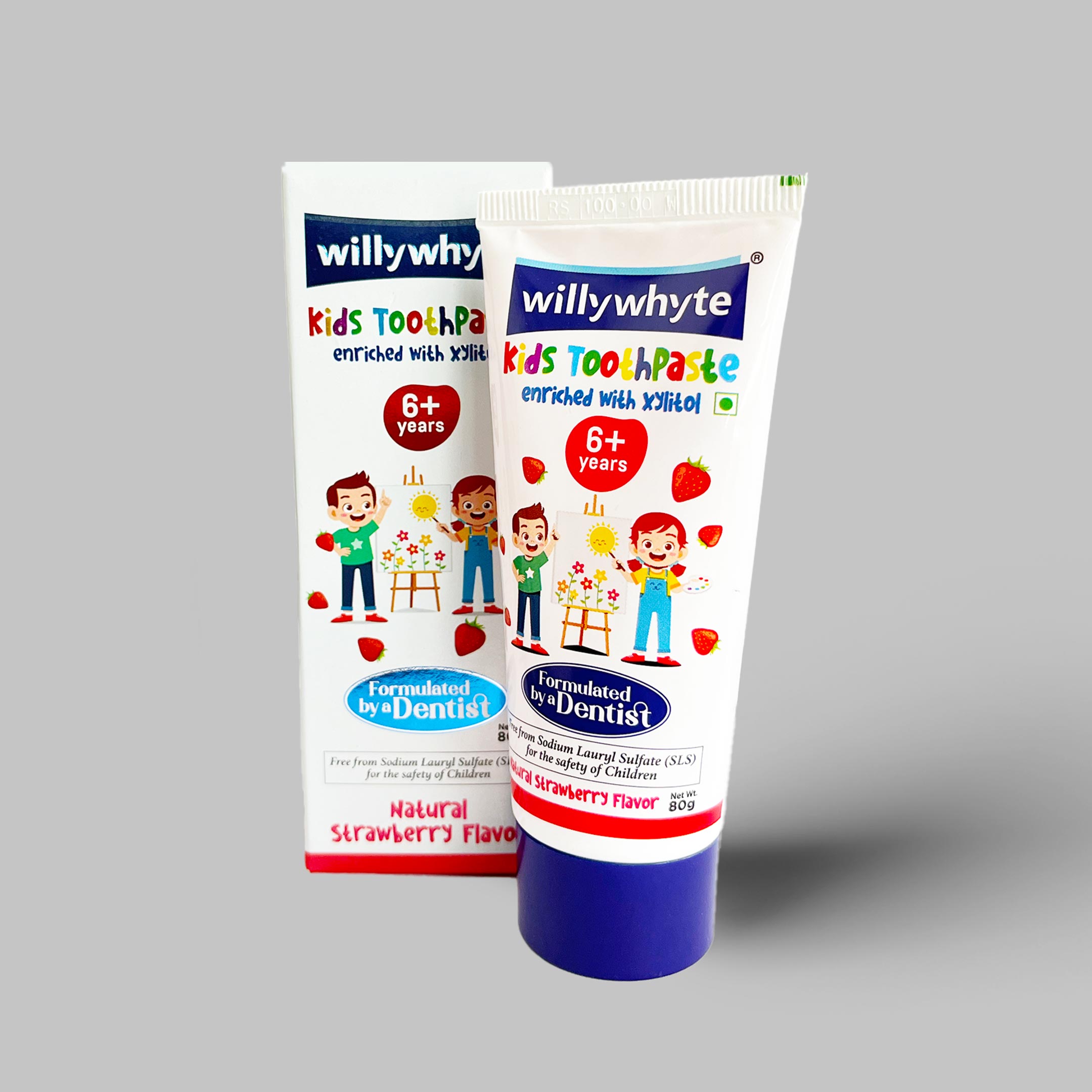 Make brushing a fun, safe, and healthy habit with WillyWhyte Kids Toothpaste, specially created to protect and care for growing teeth. Enriched with Xylitol, this gentle formula helps fight cavity-causing bacteria, strengthen enamel, and keep breath fresh, ensuring your child’s smile stays bright and healthy every day.